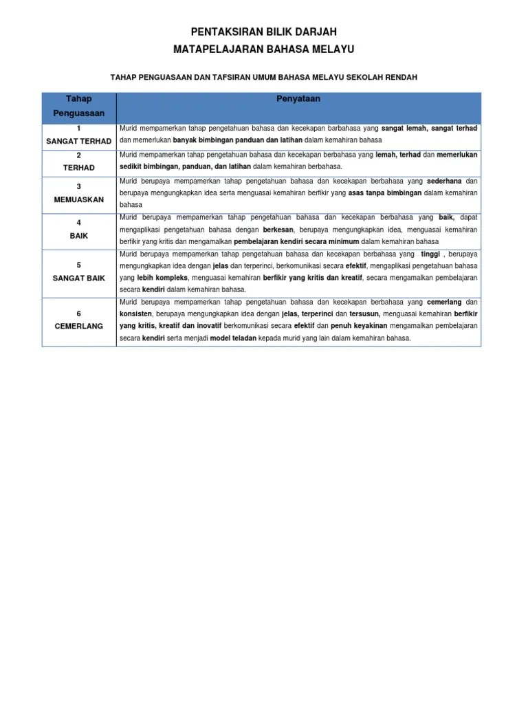 Tahap Penguasaan Pbd Bahasa Melayu / Templat Pelaporan Pentaksiran Bilik Darjah Pbd Versi 3 0 Baru Pendidik2u